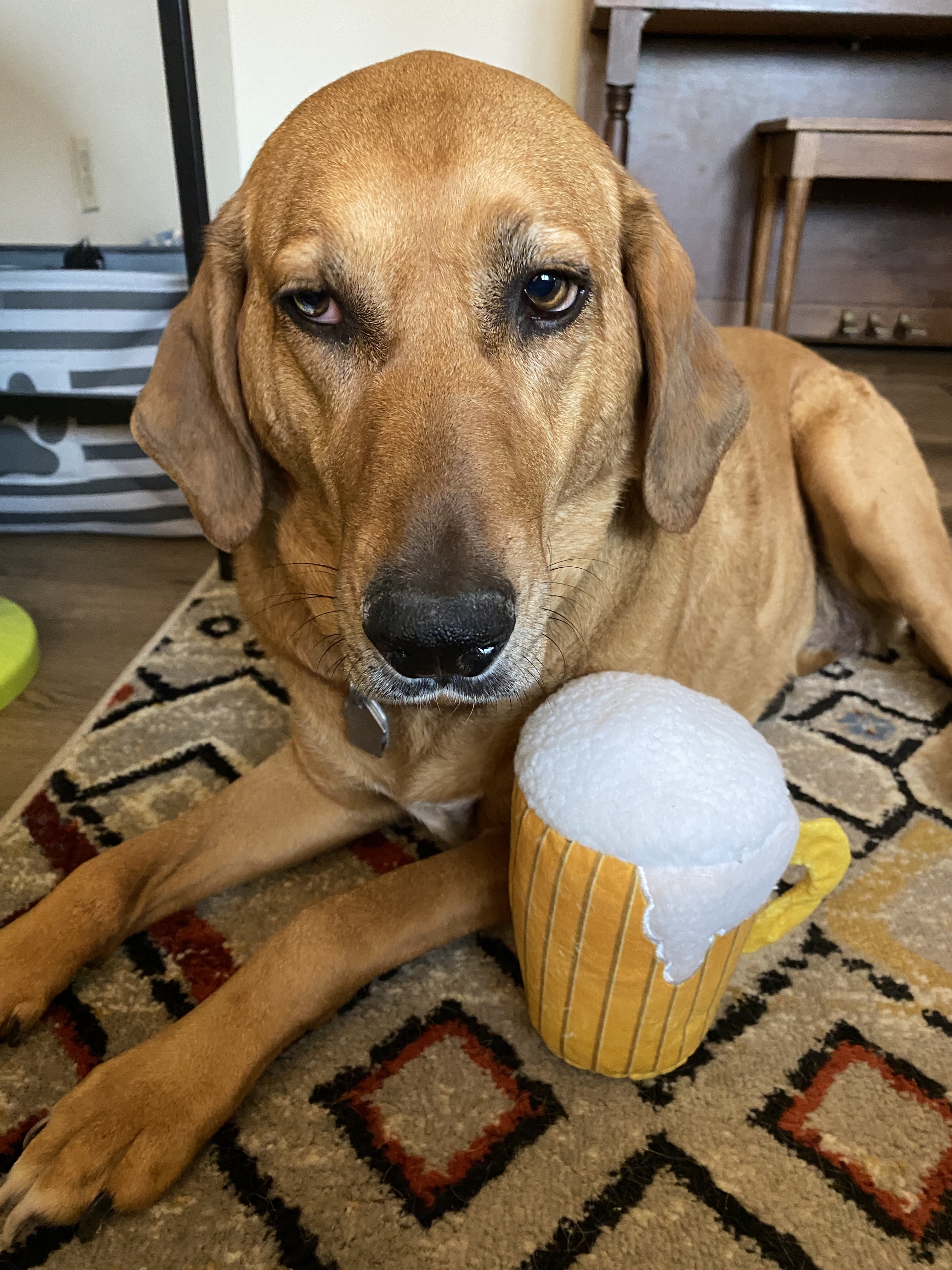 The dog in the header pic looks like my own sweet girl. But she prefers beer.